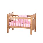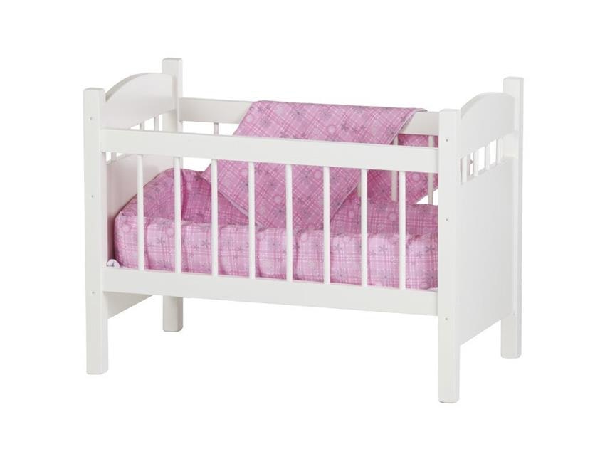 Pretend play is an important part of development for your toddlers. Your little one will love putting their baby doll to bed in the beautiful American Made Wooden Crib Doll Bed. This baby doll furniture is proudly made in the USA. The adorable bedding is included with a pink floral pattern. This fits dolls 12"-18" tall, including American Girl dolls.