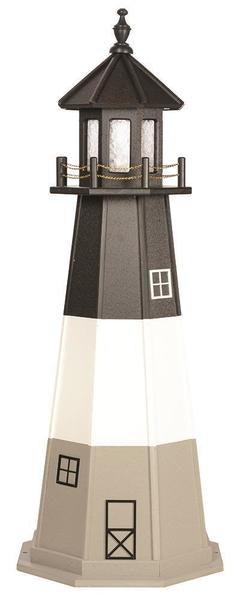 This charming replica of the original lighthouse will add color and beauty to your patio, garden or lawn. Handcrafted by the Amish of Lancaster County, it is built with care and commitment to quality. Use our convenient drop down menus to choose from different colors to customize your lighthouse colors.