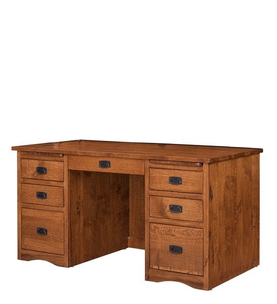 The Amish Woodville Double Pedestal Desk with Optional Hutch or Lift Top shines as you set to work behind it. Everything you need for a productive work area is built into this desk. There's a spacious top to spread out documents as you work on your laptop. The double pedestal offers drawers on each side to organize files and store office essentials.
