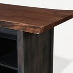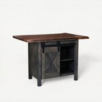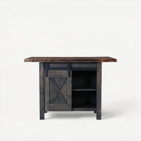 The Amish Rustic Denton Kitchen Island measures 60" wide, 20" deep, and 38 1/4" high. There are pullout drawers behind the doors for easy access to stored items. There are three adjustable shelves to create the right fit for your items. The live edge wood top is magnificent and unique, and it's sure to draw some attention.