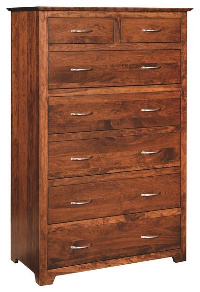 This Amish Ludington Youth 7-Drawer Chest is shown in the picture handmade out of cherry wood with the OCS-113 Michael's Cherry Finish. You can get this Amish chest of drawers delivered to your home in the exact same wood and finish combination or choose your own wood and finish to match your bedroom suite!
