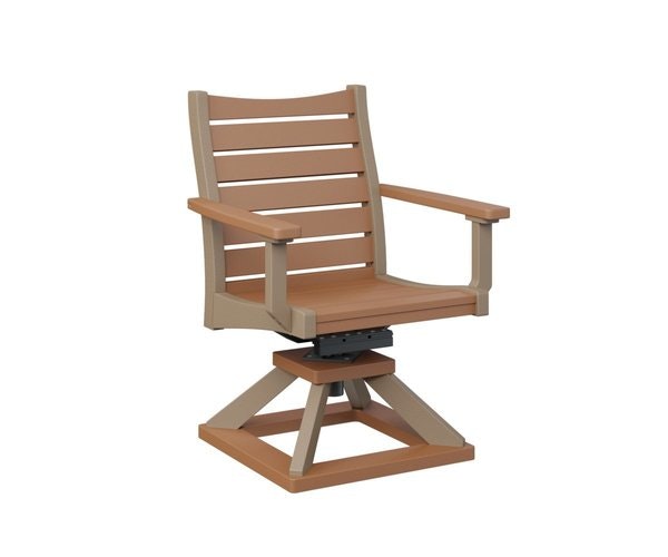 The Berlin Gardens Bristol Poly Swivel Rocker Dining Chair has a slatted, slightly contoured back that provides comfort and style. Add cushions for additional comfort and choose your favorite color from our solid, tropical, and natural poly colors. With a swivel and rocking feature, this poly dining chair allows for easy in and out access,