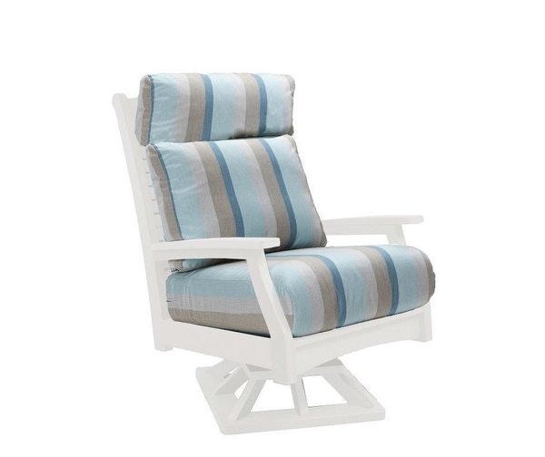 One of the most comfortable high-back swivel rocker patio chairs you'll ever sit in, our Berlin Gardens Classic Terrace High Back Swivel Rocker is Amish built and made in America. This swiveling rocker chair is built with poly lumber and cushioned with Sunbrella fabric, both of which are known for their superior outdoor performance.