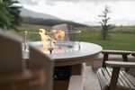 Our Berlin Gardens Donoma 44" Round Poly Fire Dining Table was designed to create a unique centerpiece to eat around. Add four chairs to this round poly fire dining table and experience the flames as you dine and converse. Upgrade your fire table with a hammered top and add a stainless steel cover to keep debris from falling in.