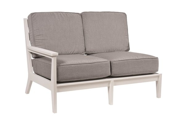Our Berlin Gardens Mayhew Poly Outdoor Right Arm Loveseat provides a comfy spot for your patio. With its deep seating design and plush Sunbrella fabric cushions, discover the comfort of poly outdoor furniture. This poly right arm love seat is backed by a warranty. For more details, check out the link in the section below.