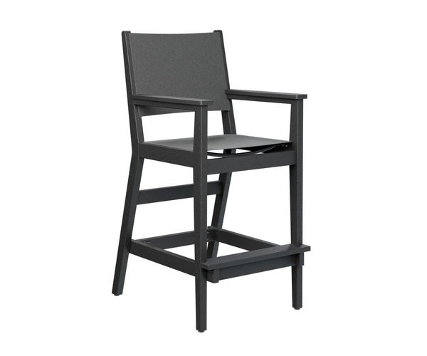 Add the unique Berlin Gardens Mayhew Sling Poly Bar Arm Chair to your outdoor bar area. With its sling seat, this sling poly bar chair provides a different style and feel to your outdoor dining experience. For this same chair with a swivel feature, check out our Berlin Gardens Mayhew Sling Poly Swivel Bar Chair.