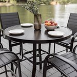Constructed from sustainable poly lumber, made from recycled plastic, these slats are designed to withstand the elements without cracking, rotting, or developing mildew. Imagine enjoying your favorite outdoor drinks without worrying about wear and tear! The allochrome stainless steel hardware ensures these stools resist rust, even in the toughest salty environments, giving you peace of mind for years to come.