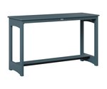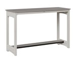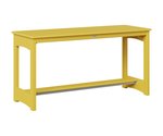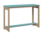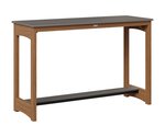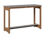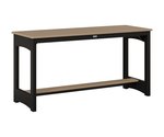 The table’s slatted HDPE top is both practical and visually appealing, allowing rainwater to drain easily while highlighting the rich, consistent color of the high-density polyethylene. Supported by a sturdy aluminum base, the design features gently arched side panels that add a subtle touch of elegance without sacrificing stability. A lower shelf offers extra space—ideal for setting down a book, a potted plant, or additional drinks—making the table as useful as it is attractive.