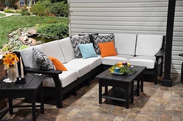 The durable poly frame of this outdoor sectional is made from an environmentally sustainable poly material, not only turning landfill waste into beautiful furniture, but offering you a product that is made to last decades in any outdoor environment. Maintenance-free, you can be sure to avoid the splinters, cracks, rust, termites, and weathering associated with other outdoor products, and put your down-time into some enjoyable rest and relaxation.