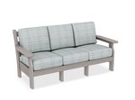 This three-person sofa is just what you need to construct a beautiful outdoor seating area to enjoy with your family and friends. The classic simplicity of the Coastal Collection will allow inclusion into any decor! From the mortise and tanon joinery, to the bold colors of the poly lumber and Sunbrella cushions, this set is the standard for outdoor luxury poly furniture.