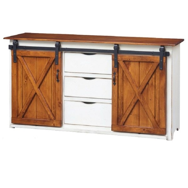 Gather the family for a fun movie night in front of the Honey Brook Barn Door TV Stand. This cute cottage look is one that fits a rustic or cottage design perfectly. The gorgeous X style barn doors open to storage for your movies, video games and more.