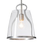 The pendant’s structure is defined by gently curved steel elements that frame the glass shade, adding a delicate, artisanal touch to the otherwise sleek silhouette. The hammered finish on the steel catches and diffuses light, casting warm, dappled shadows that soften the space without overwhelming it. Below, the clear glass shade allows light to flow freely, whether you’re illuminating a kitchen island, a dining nook, or a cozy reading corner, turning everyday moments into something a little more refined.