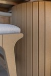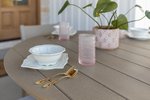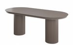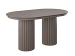 The sleek oval top rests on two bold cylindrical pedestal bases with subtle vertical detailing, creating a clean, contemporary look. Spacious and sturdy, this table is ideal for family meals, entertaining friends, or hosting celebrations outdoors.