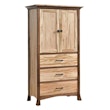 This armoire is full of beautiful features. It measures 40" wide, 21" deep and 72" high. It has three drawers and two cabinet doors with adjustable shelves inside. Each drawer glides out smoothly on 3/4 extension slides, and the drawers feature dovetailed joinery to ensure the strongest support. It's built with premium quality solid wood and offers the durability of heirloom quality furniture. The Oasis is built in an Amish woodshop in Ohio.