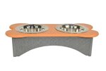 Cute, colorful, and offering a 2 cup capacity, the Poly Elevated Dog Bowl Feeder is attractive and durable. Shaped like a yummy bone, this eco-friendly pet item is made from recycled plastic. The side features charming cut-out paw prints.