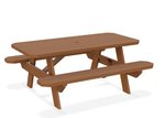 Accentuate your outdoor dining area with our beautiful Poly Picnic Table. Perfect for family gatherings or entertaining friends, our Poly Picnic Table will give you a place to sit down and relax while you enjoy a casual meal outdoors. Complete with a large top and attached benches, this all-in-one piece has a classic look that will be at home in any backyard or patio. The wide bench seat provides a comfortable place to sit, while the top sits high enough to provide ample leg room. Add the optional Sunbrella umbrella and umbrella base for the perfect shade on warm summer days, or to keep your food dry if there happens to be an unexpected shower. When not in use, our optional umbrella hole plug will ensure nothing falls through the center hole and allow more room for food and beverages.