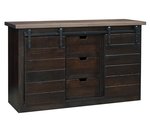 Contributing to a contemporary rustic look, the Amish Reclaimed Barn Wood Hartland Server brings sliding doors into its storage design. The mini barn doors open to reveal two adjustable shelves on each side. There are three center drawers, each made with fine dovetailed joints that are the strongest and most supportive for items you want to store.