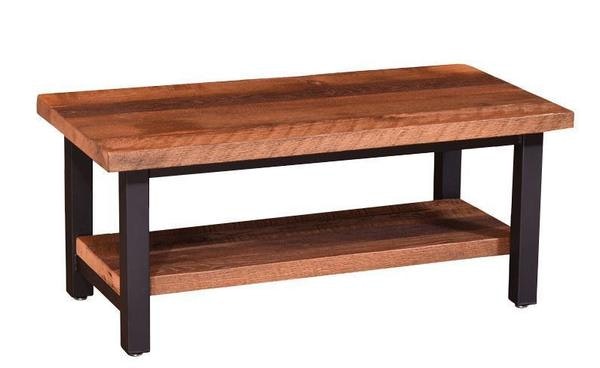Bringing barn wood to the city with this Reclaimed Wood Imperial Coffee Table. The reclaimed wood table top is from century old salvaged Ohio barn wood full of unique character. The black metal base creates a classic urban feel. Handcrafted by our talented Amish Craftsman in their Ohio wood shops ensuring superior quality and durability. Original knot holes, nail holes and hand saw marks are left open embracing over 100 years of history of this reclaimed barn wood or choose to fill the nail holes on the table top for a smoother feel. This Imperial coffee table is the perfect addition to any modern living room, a sleek design with years of history giving the reclaimed wood incredible character. You can be sure this Reclaimed Wood Coffee Table is truly one-of-a-kind, made just for you.