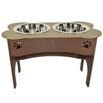 Built from recycled poly lumber, this feeding stand is as kind to the planet as it is to your pet. Made from 100% post-consumer recycled plastic, it’s an eco-friendly choice that doesn’t compromise on durability. The material is maintenance-free, easy to wipe clean, and resistant to mildew, ensuring it stays looking fresh even with daily use. The stainless steel bowls are a smart addition, too—they won’t promote bacterial growth, keeping mealtime safe and hygienic for your dog.