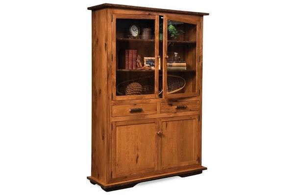 Gentle curves and natural hickory branches bring our Rustic Amish 2-Door Hutch to life. This rustic buffet and hutch features two full-extension drawers, oversized cabinets, and ample shelf space. Be sure to add the interior touch lighting to bring a hint of elegance to this already beautiful, Rustic Amish Hutch.