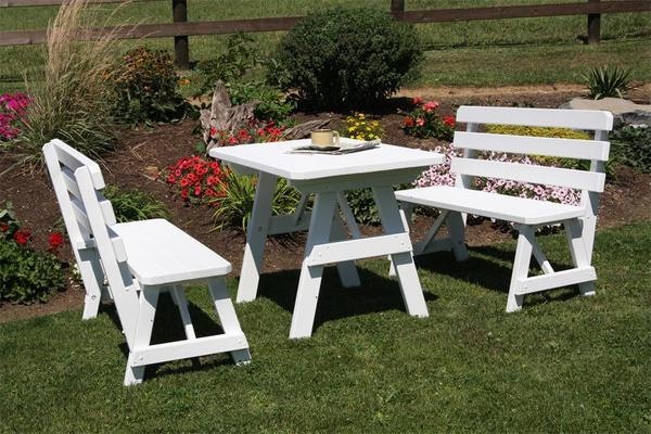 Set the scene in your garden, backyard or patio with this delightful outdoor furniture set. Built by the Amish with durable pine wood, your outdoor scene will offer a warm welcome.