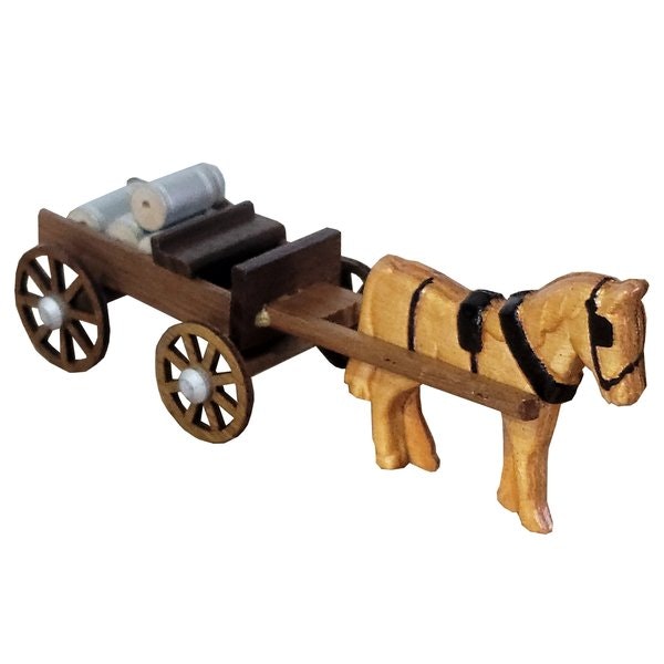 Encourage creative play with this collectible toy. Every detail is attended to here, from the horse's tail to the wagon seat. Four milk cans can be loaded and unloaded after the buggy rolls in!