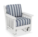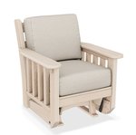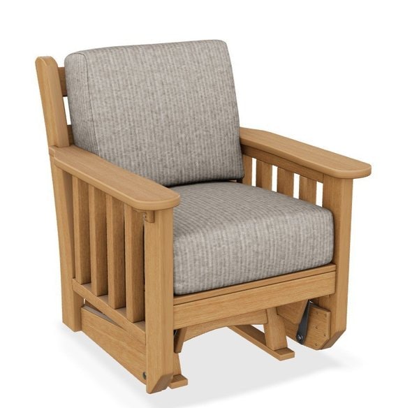 Take the beautiful and popular indoor mission style outdoors with a mission style poly glider chair. This poly mission glider chair hides its unsightly screws, providing a tasteful appearance.