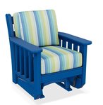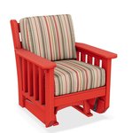 Feel good about purchasing this mission glider. The ecofriendly poly lumber used to create this chair is crafted from 100% recycled plastic. The Sunbrella fabrics are the gold standard in the outdoor cushion industry. This poly mission glider is backed by a 20 year residential warranty, making your purchase risk-free.