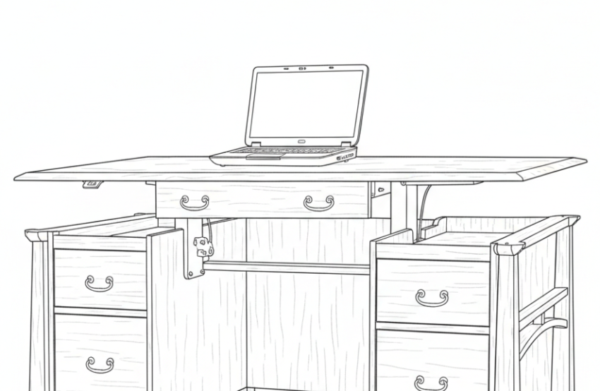 Add Pullout Writing Pad above Drawer Bank (Standard)