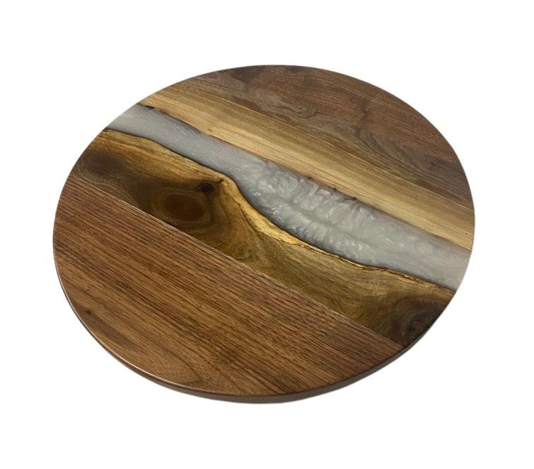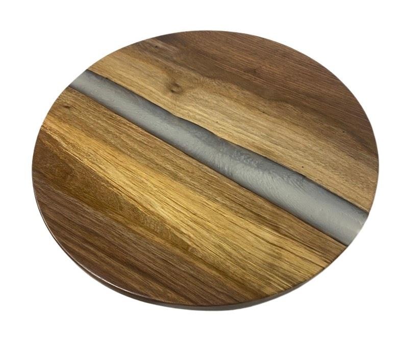 Amish Artistic Walnut Wood Lazy Susan Wood and Epoxy Resin In-Stock