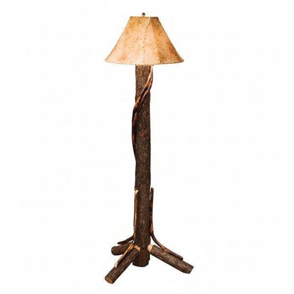 Amish Rustic Hickory Twig Floor Lamp with Lambskin Shade