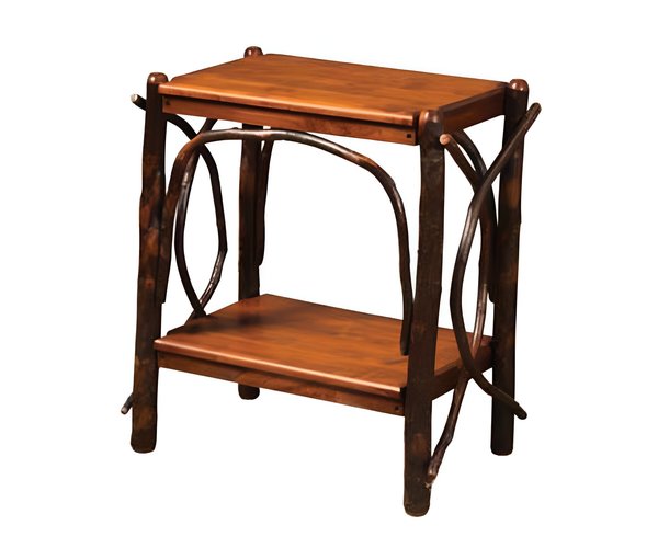 Amish Rustic Hickory Wood End Table with Solid Shelves - Quick Ship