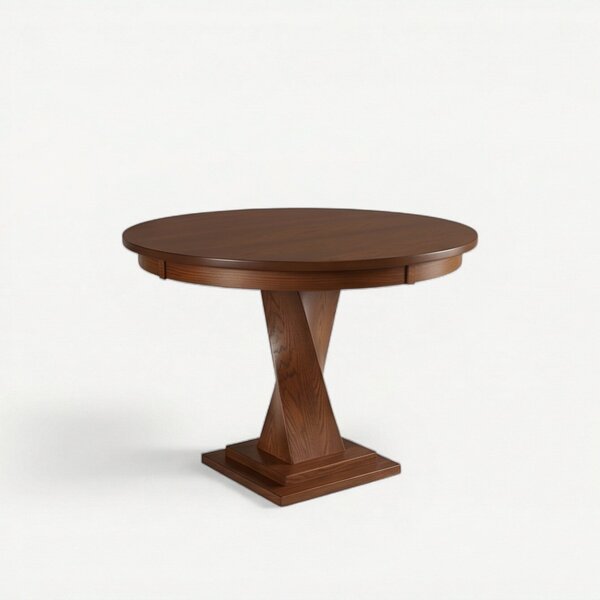 Amish Solid Wood Oxnard Twisted Small Single Pedestal Dining Table - Modern Style