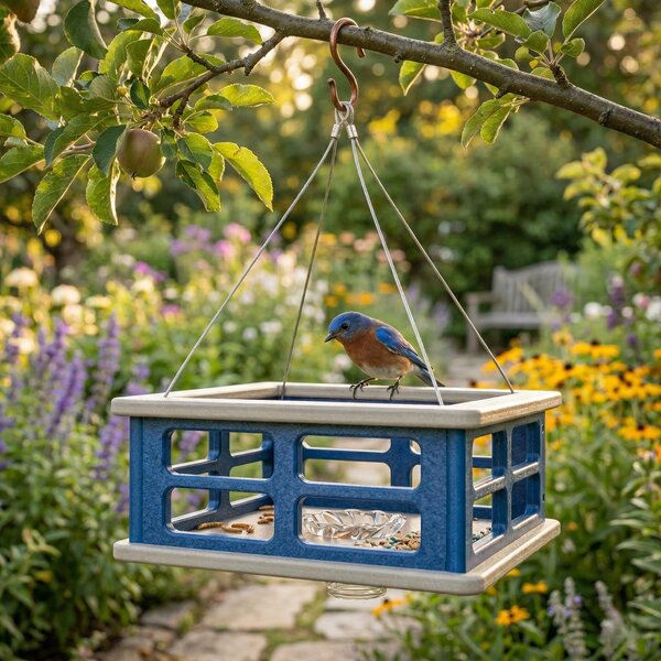 Amish Recycled Poly Caged Platform Bluebird Feeder Mealworm Feeder