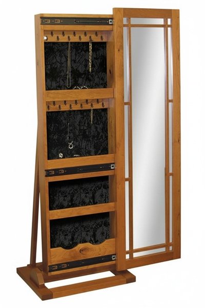 Amish Mission Jewelry Storage Cabinet with Full Length Sliding Mirror
