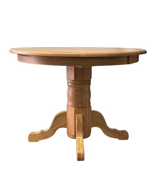 Outlet Amish Made Oak Wood 42" Single Pedestal Dining Table with Extension In-Stock
