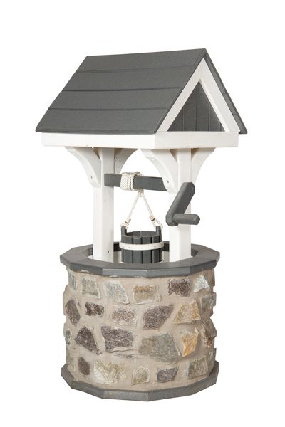 Amish Medium Stone Wishing Well and Poly Roof